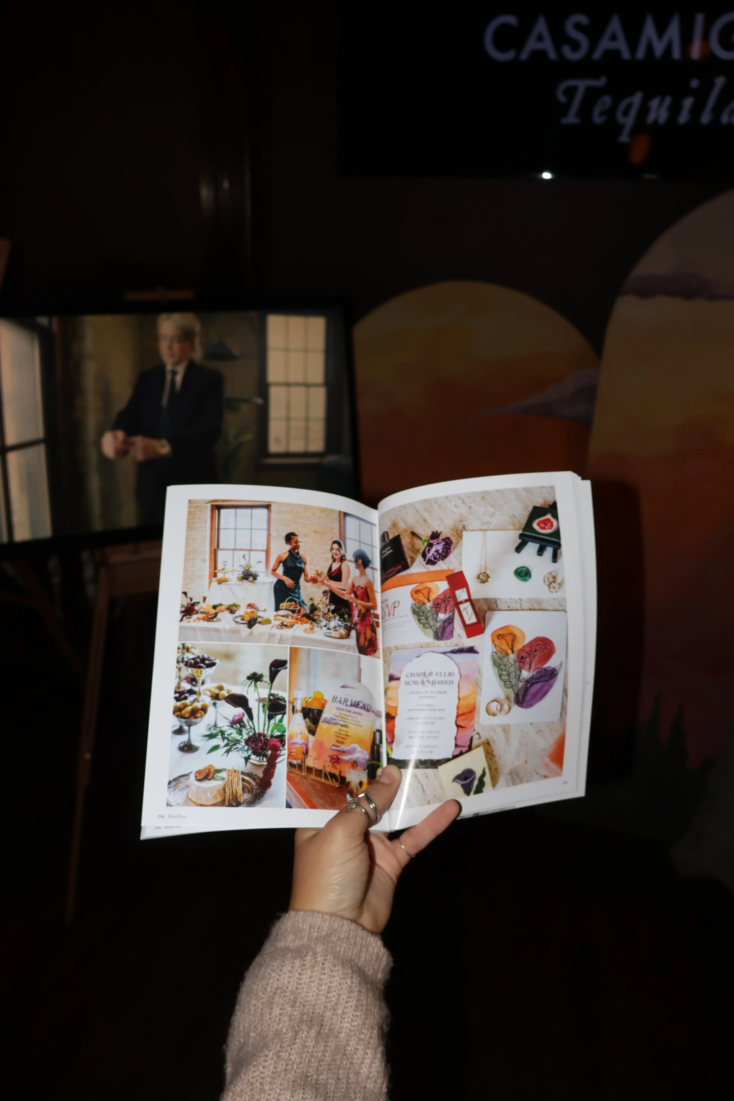 Cayla’s booth in the background, with WedPlan Milwaukee’s magazine open in the foreground to a styled shoot she was featured in.